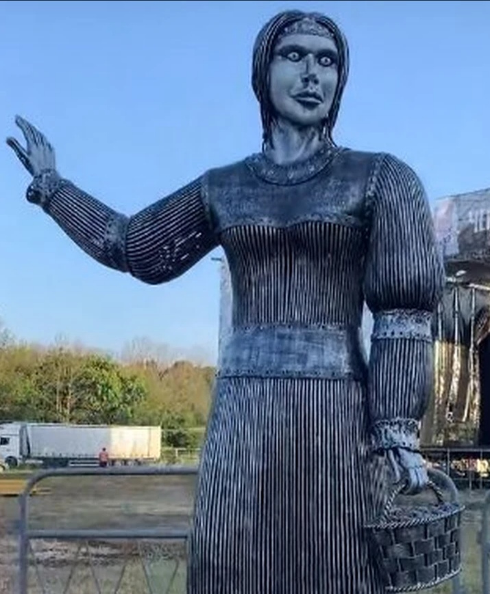 Но есть нюансы, которые не понравились местным жителям — у статуи страшное лицо, а сквозь блузку торчат соски